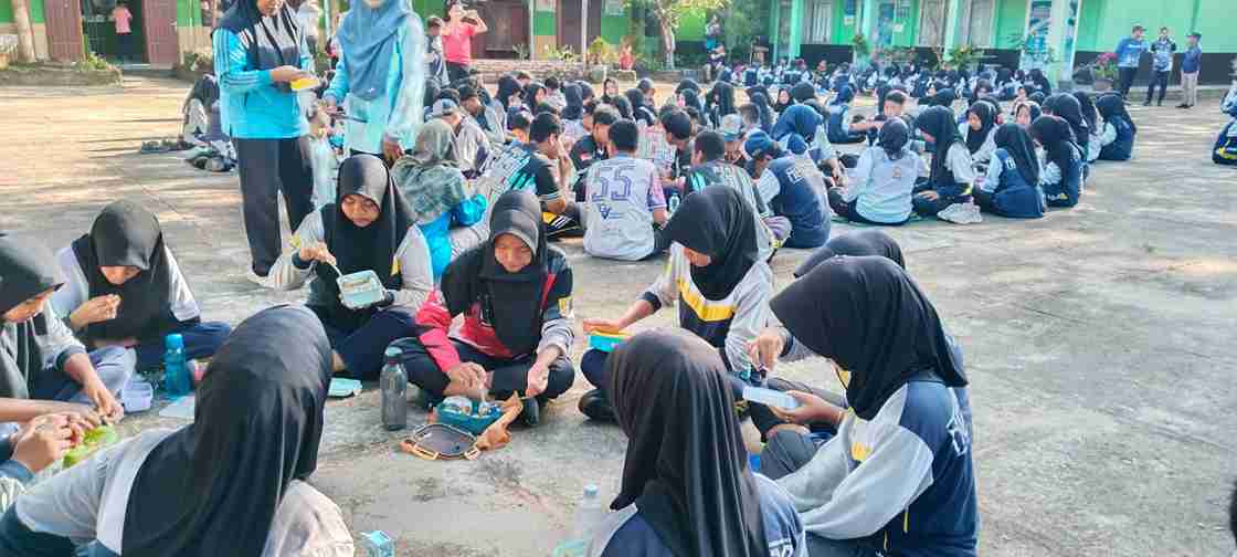 Sejak pagi, lapangan SMP Negeri 1 Membalong dipenuhi keceriaan. Siswa duduk berkelompok bersama teman sekelasnya sambil menata bekal masing-masing. Ada yang membawa nasi dengan lauk sederhana, ada yang membawa buah potong, hingga sayuran rebus dan jus segar. Guru-guru turut mendampingi serta memberikan penjelasan ringan mengenai manfaat makanan bergizi.