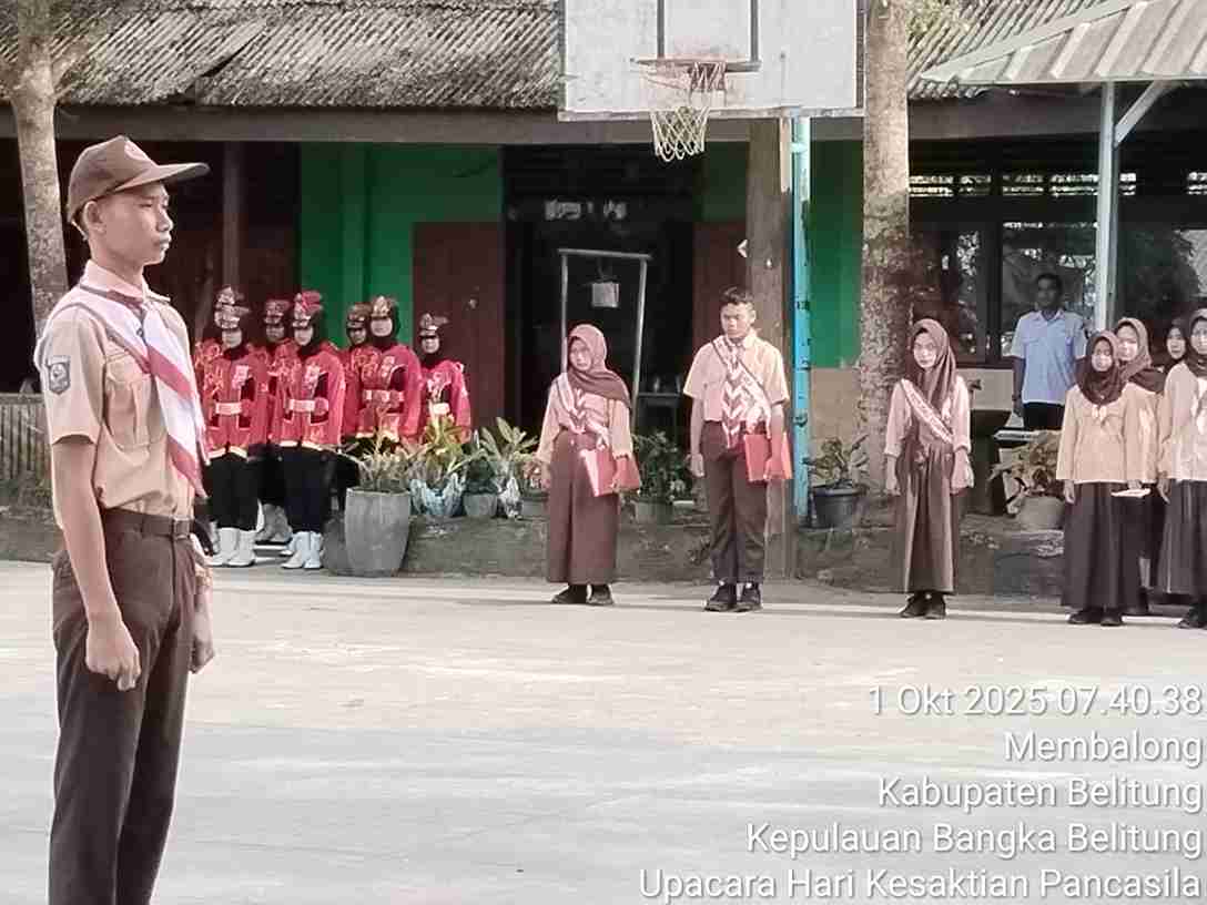 Membalong, 1 Oktober 2025 – Dalam rangka memperingati Hari Kesaktian Pancasila, keluarga besar SMP Negeri 1 Membalong melaksanakan upacara bendera pada Rabu, 1 Oktober 2025, bertempat di lapangan upacara sekolah. Kegiatan yang dimulai pukul 07.30 WIB ini berlangsung dengan khidmat, tertib, dan penuh makna, diikuti oleh seluruh pendidik, tenaga kependidikan, serta seluruh peserta didik kelas VII hingga IX.